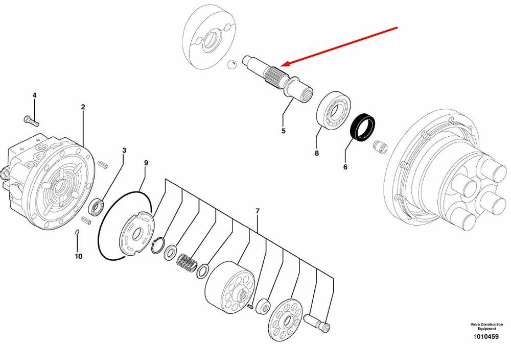 Вал ходового гідромотора та редуктора ходу на екскаватор Volvo EC25, EC30, EC35, ECR28, ECR38 (Вольво)