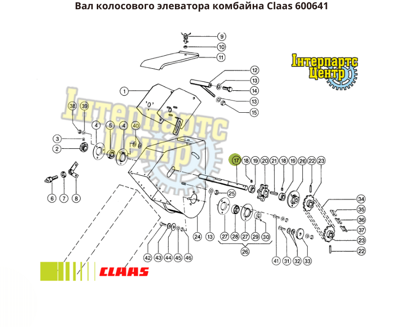 Вал колосового елеватора комбайнів Claas Dominator, Mega, Medion. Ведучий вал верхньої частини колосового елеватора. Передача обертального моменту приводу на зірочку транспортерного ланцюга.