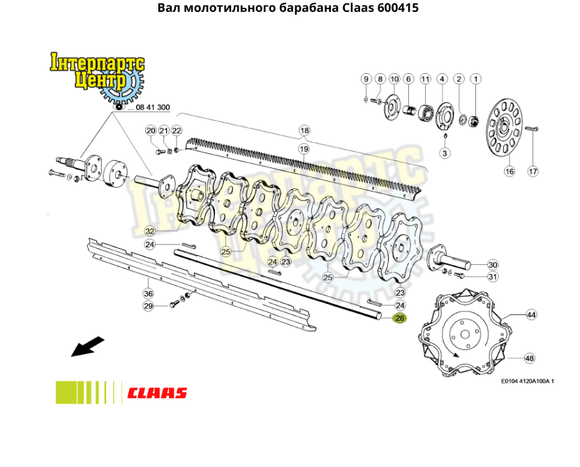 Вал молотильного барабана Claas 600415, 000600415, 600415.0, 6004150, 0006004150