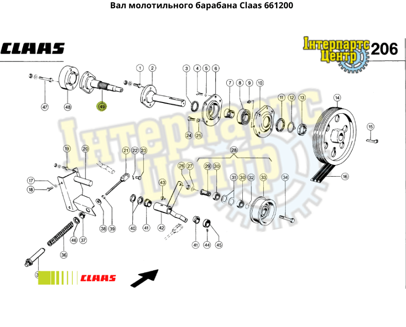 Вал молотильного барабана зернозбиральних комбайнів Claas. Розмір: D150x240 мм.