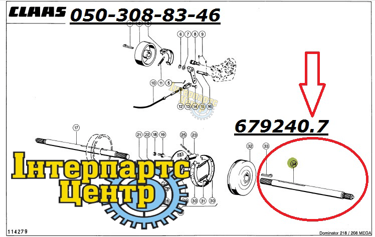 Проміжний вал трансмісії зернозбиральних комбайнів Claas (Commandor, Dominator, Mega). Розміри в мм: Довжина – 859 Зовнішній діаметр – 44.5. Номери за каталогом: 679240.7 0006792407 679240, 679240.5. Аналог.