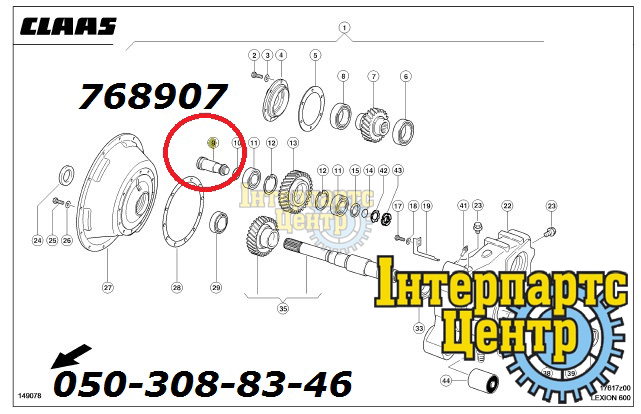 Вал проміжний розподільчого редуктора 768907, 0007689070 CLAAS