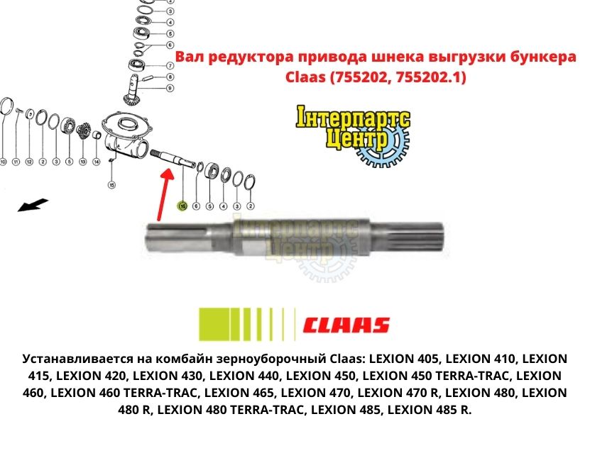 Вал редуктора вивантаження Claas 755202, 000755202, 755202.1, 7552021, 0007552021