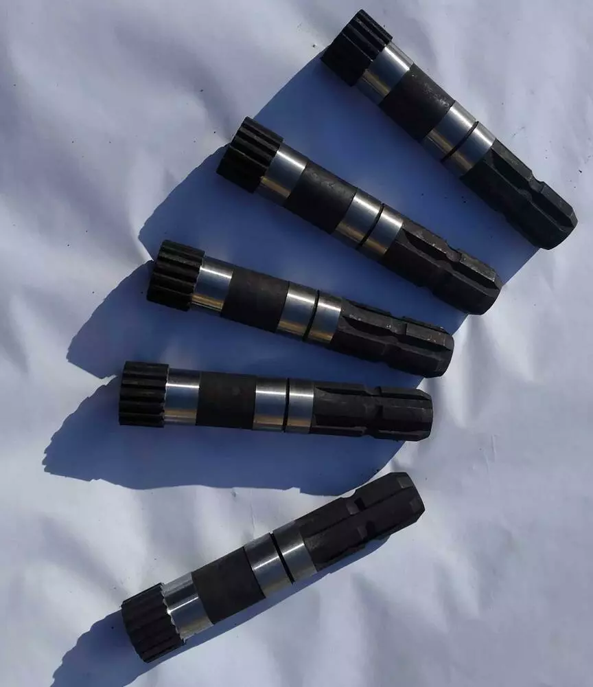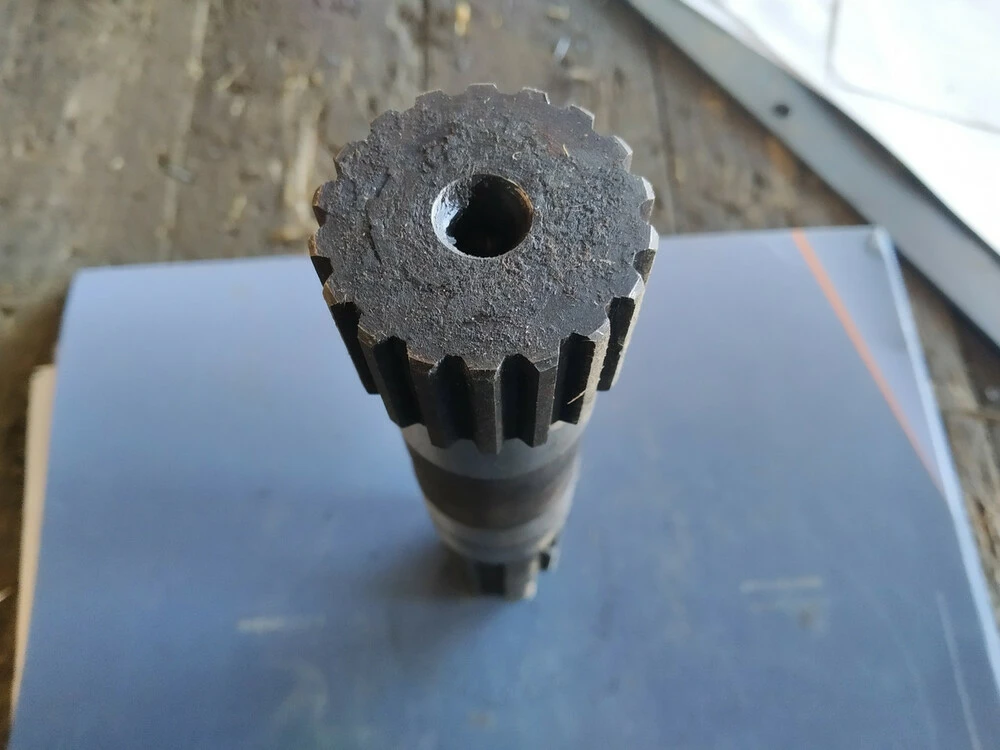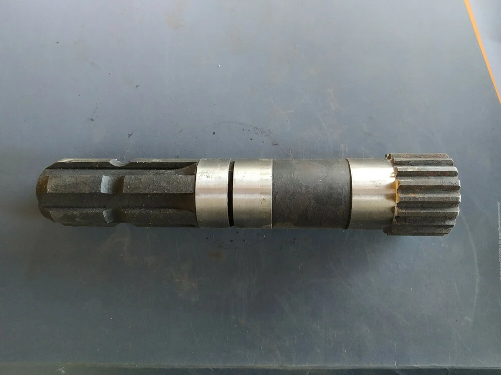 Вал шлицевой редуктора почвофрезы EcoASTRA, 6 шлицов на хвостовике, 18 шлицов на соединении шестерни с валом