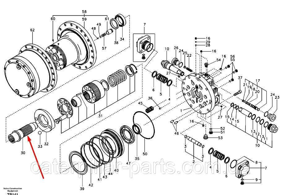 Вал ходового гідромотора та редуктора ходу на екскаватор Volvo EC135, EC140 (Вольво).