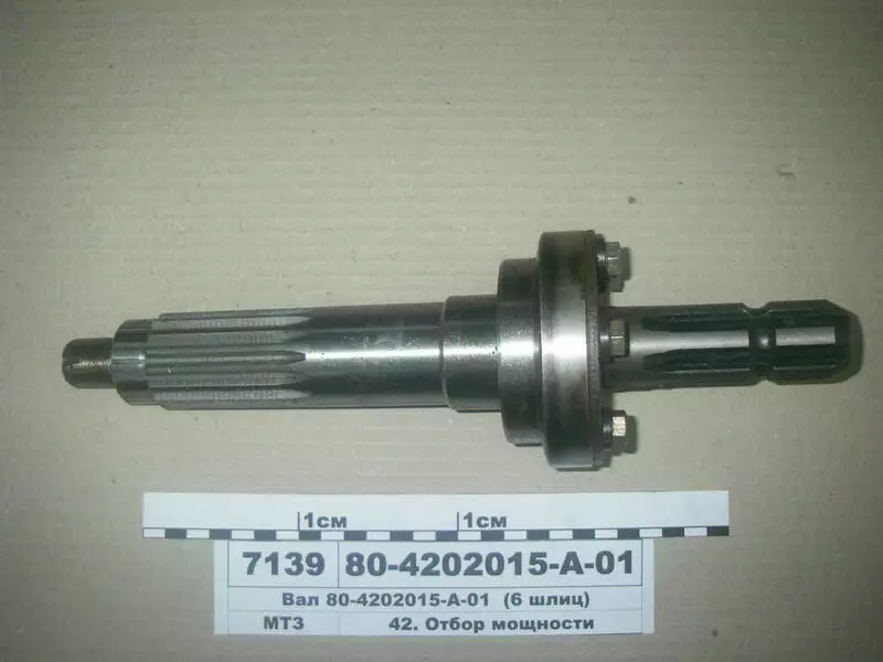 Вал ВОМ в сборе 80-4202017-Б + 80-4202019-Б-01, устанавливается на тракторах МТЗ-80, 82, хвостовик Z=6, оригинальный, производства ОАО 'Бобруйский завод тракторных деталей и агрегатов, 'ОАО 'БЗТДиА', г. Бобруйск, Республика Беларусь Вал отбора мощности (ВОМ) — механизм трансмиссии, посредством которого осуществляется отбор крутящего момента от силового агрегата с последующей его передачей на внешний механизм. С помощью ВОМ осуществляется привод навесных и прицепных машин, а также и автономных агрегатов различного назначения. Именно наличие вала отбора мощности делает трактор по-настоящему универсальной машиной, которую можно эффективно применять в самых разных сферах. Тракторы Минского завода обязательно оснащаются ВОМ, причем по месту установки эти агрегаты делятся на передние, боковые и задние. Самое широкое распространение имеют валы с задним расположением, так как это позволяет эксплуатировать с трактором разное навесное и прицепное оборудование. Боковое и переднее расположение ВОМ встречается значительно реже.