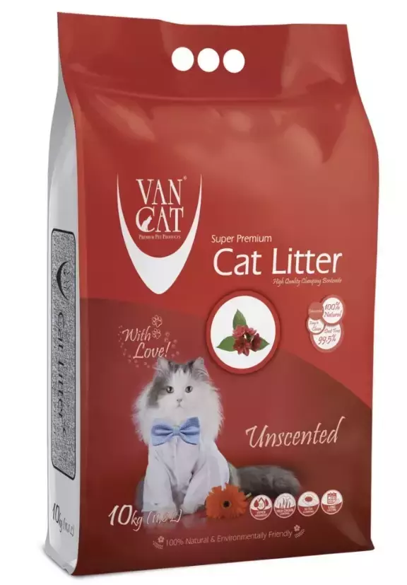 Наповнювач Van Cat Super Premium виготовляється з натурального білого бентоніту (природний глинистий мінерал), активованого за допомогою кальцинованої соди із застосуванням подвійного просіювання для усунення пилу.