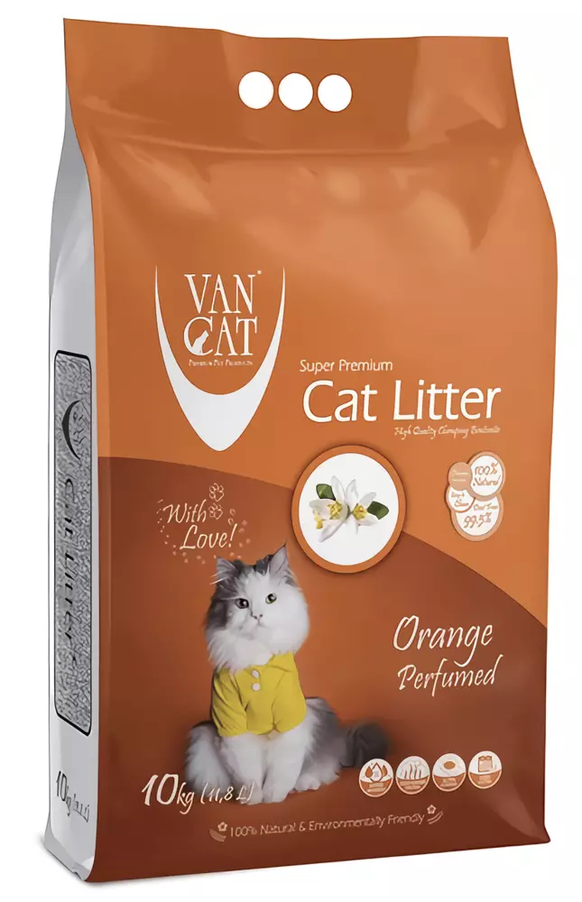 Наповнювач Van Cat Super Premium Quality виготовляється з натурального білого бентоніту (природний глинистий мінерал), активованого за допомогою кальцинованої соди із застосуванням подвійного просіювання для усунення пилу.