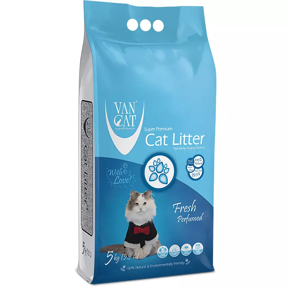 Наповнювач Van Cat Super Premium Quality виготовляється з натурального білого бентоніту (природний глинистий мінерал), активованого за допомогою кальцинованої соди із застосуванням подвійного просіювання для усунення пилу.