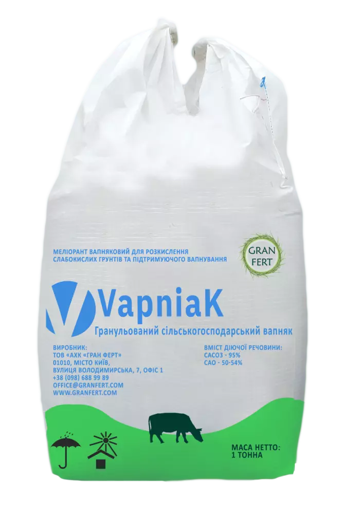 Гранульоване вапно GRAN FERT VAPNIAK - це продукт в якому ви можете бути впевнені. Високий вміст діючої речовини, якомога дрібніший помол півпродукту, що забезпечує найвищий рівень активно діючої речовини, а, як наслідок, 100% засвоєння грунтовим вбирним комплексом. На всіх етапах доробки, ми вкладаємо максимум зусиль для отримання високоякісного продукту.