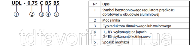 Умовні позначення варіатора UDL