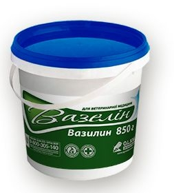 мОпис Вазелін ветеринарний має вигляд однорідної мазеподібної речовини від білого до світло-коричневого кольору. Склад Жироподібна речовина мінерального походження, яка являє собою суміш твердих, м'яких та рідких вуглеводів. Фармакологічні властивості Вазелін при нанесенні на шкіру запобігає висиханню шкіри, зменшує можливість виникнення тріщин, робить тканини більш еластичними, поліпшує кровообіг, зменшує біль при запаленні, сприяє нормалізації обмінних процесів і прискорює епітелізацію травмованої шкіри та слизових оболонок. Застосування Вазелін застосовують зовнішньо як пом'якшувальний і протизапальний засіб при подразненні та запаленні дійок вимені, шкіри, а також при опіках. Вазелін наносять тонким шаром на дійки вимені та уражені ділянки шкіри. Протипоказання Не встановлені. Форма випуску. Полімерні контейнери чи туби по 100, 850г. Зберігання Зберігають у темному сухому місці при температурі не вище 300 С. Термін придатності 2 роки з дати виготовлення.