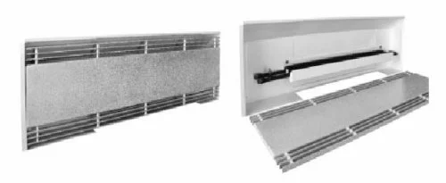 Конвектор представляет собой металлический короб, выполненный из оцинкованной стали, внутри которого установлен медный теплообменный узел, закрытый декоративной панелью с перфорированными окнами, для входа-выхода воздушного потока. (см. рисунок).