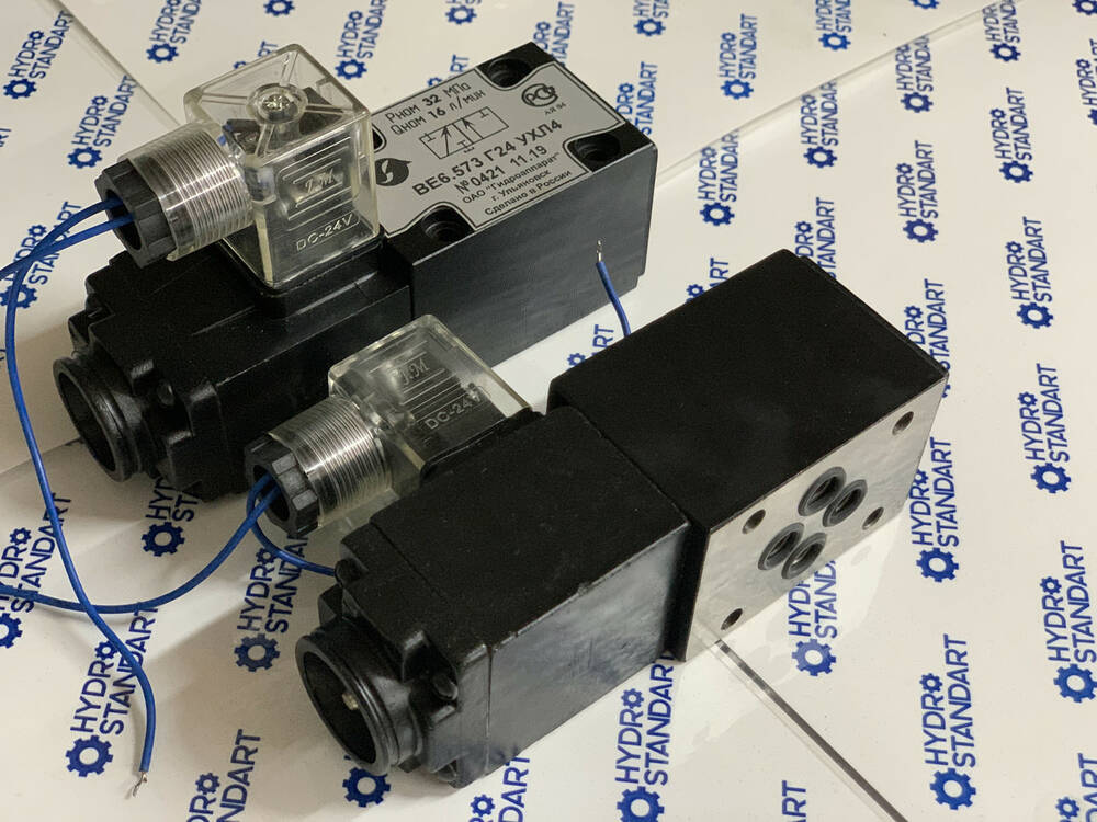 Гідравлічні розподілники ВЕ6.574Е Г24 призначені для керування й зміни напрямку або пуску та зупинки потоками робочих рідин у гідравлічних системах. Перемикання положення золотника відбувається за допомогою керівного елемента — електромагнітна (привода електромагнітного).