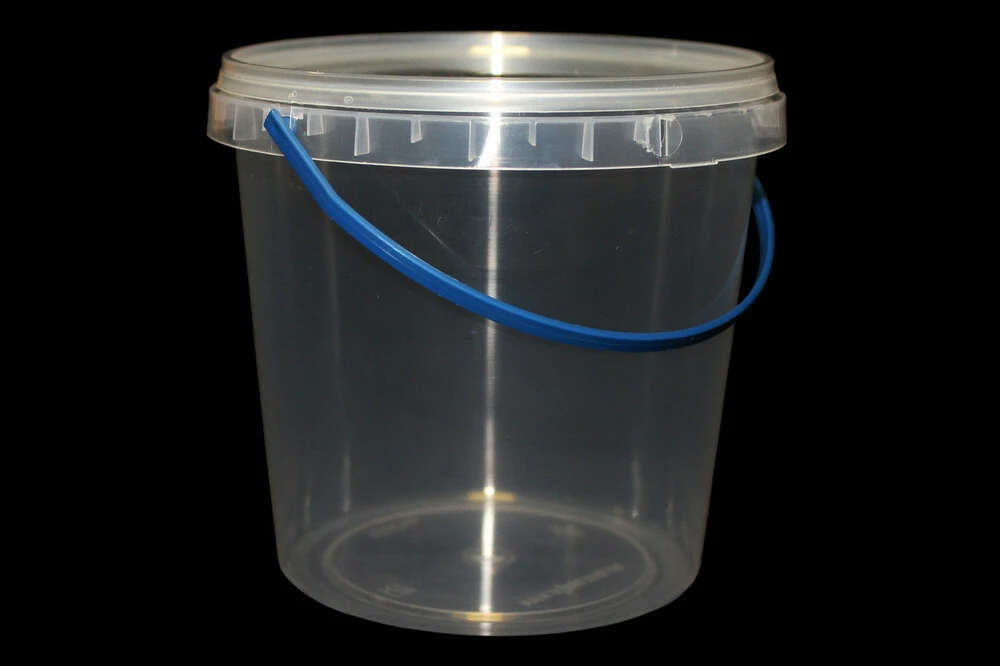 Відро пластикове для меду, місткістю 1.0 л. Вироблено з харчового пластику. На кришці є пломба контролю першого розкриття.