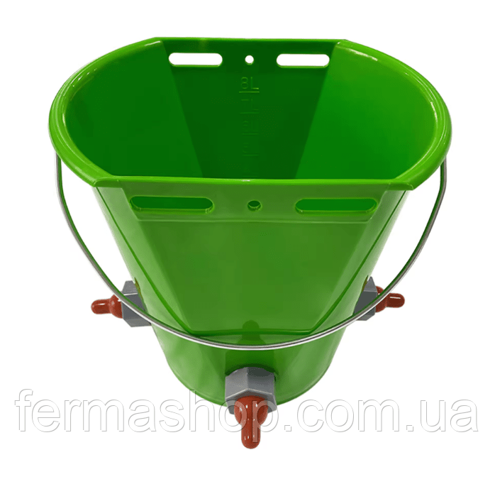 Характеристики: Объем - 8 л. для одновременного кормления до 3 ягнят, козлят, поросят без крышки материал, совместимый с продуктами питания В комплект поставки входит: ведро - 1 шт. соски - 3 шт. клапана - 3 шт. крепление на стену - 1 шт.