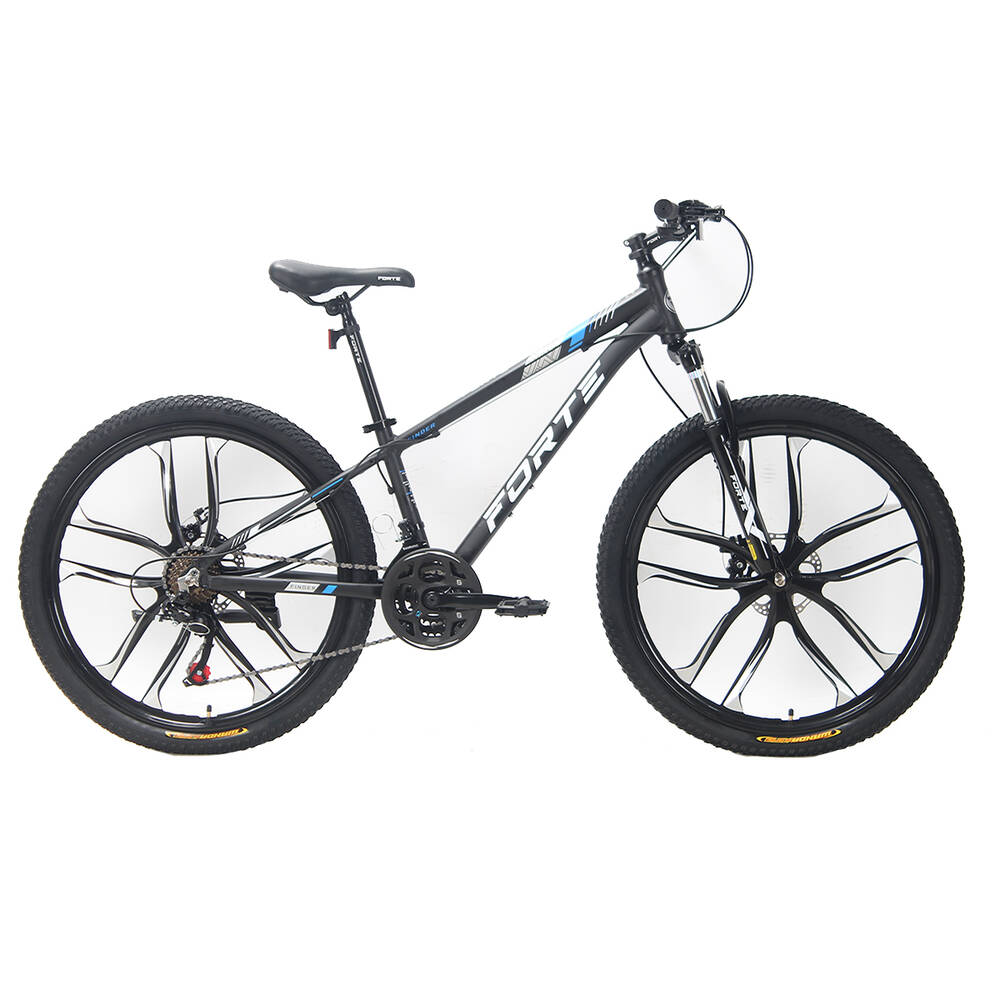 Опис велосипеда FORTE FINDER 25.2613-05S к26" р13" алюміній чорно-синій Велосипед FORTE FINDER  з алюмінієвою рамою має діаметр коліс 26” та виконаний у чорному кольорі.