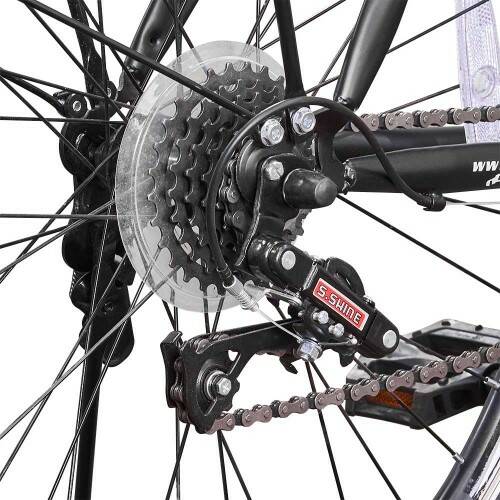 Велосипед оснащений 18 швидкостями, що дозволяє легко адаптуватися до різних умов маршруту. Гальма V-brake передні та задні забезпечують ефективне гальмування, а алюмінієві ободи забезпечують надійність та міцність.