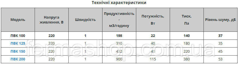розмірів і продуктивності, використовується в припливно-витяжної