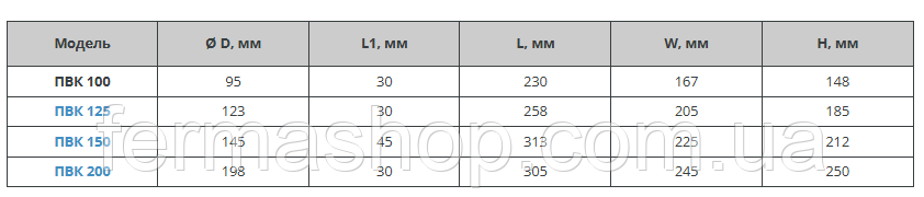 (наприклад ПВК 100 монтується у круглий отвір діаметром 100 мм).