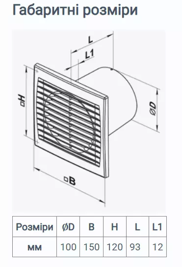 Встановлюється у витяжний канал безпосередньо або через повітропровід. Забезпечує видалення повітря з продуктивністю 94 м3/год, споживання не перевищує 14 Вт на годину.