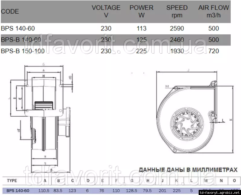 Технические характеристики: Вентилятор BVN BPS 140-60
