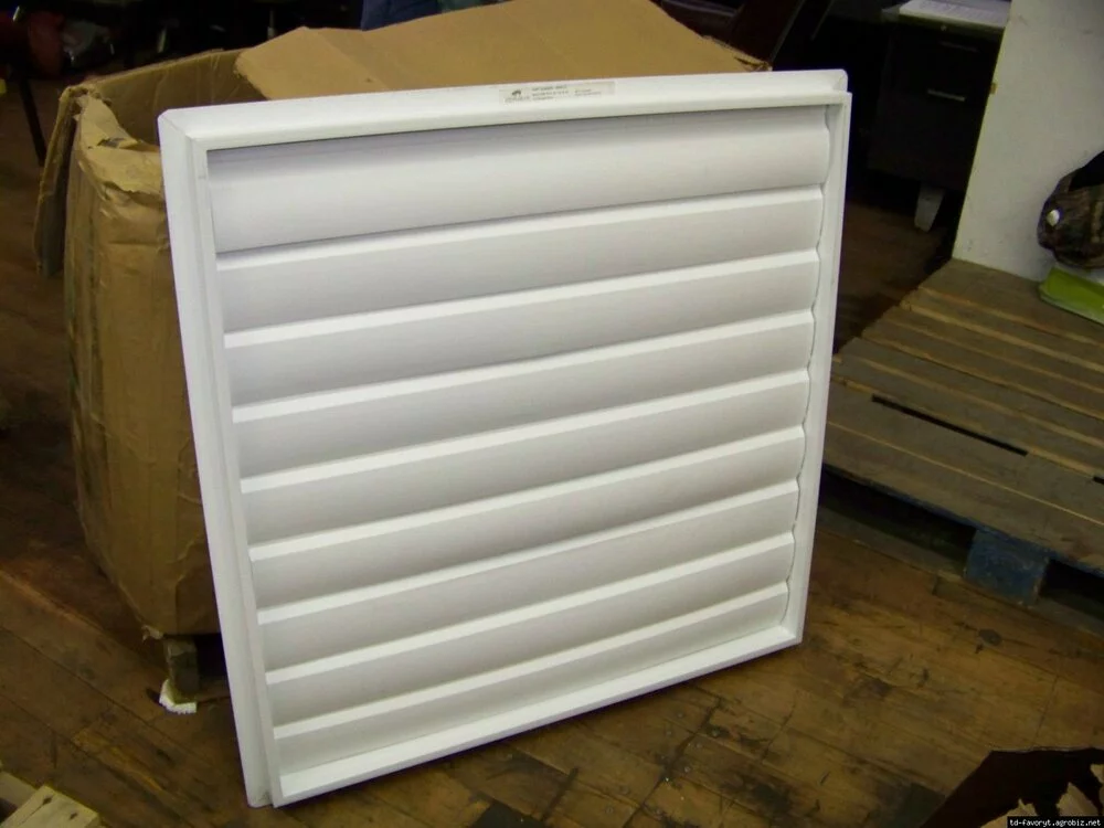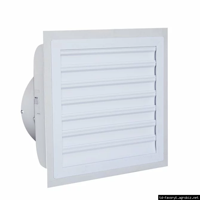 18-дюймовый вытяжной вентилятор AirStorm из стекловолокна включает в себя вентиляторный блок и соответствующую ПВХ-жалюзи.