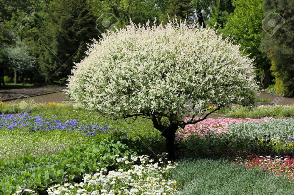 Верба цільнолиста японська Хакуро-Нішікі на штамбі. Ива цельнолистная японская Хакуро-Нишики на штамбе. Salix integra Hakuro-Nishiki.