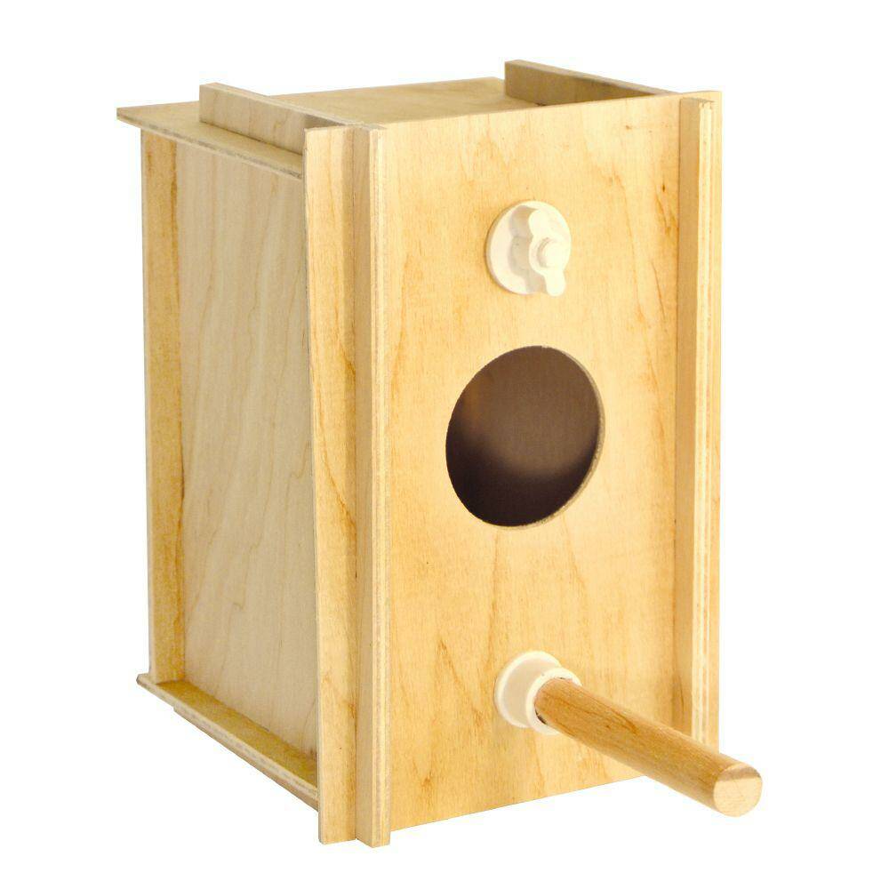 Вертикальна дуплянка для дрібних декоративних птахів. Основна перевага цього виду гнізда є те, що пташенята не зможуть надто рано покинути дуплянку.