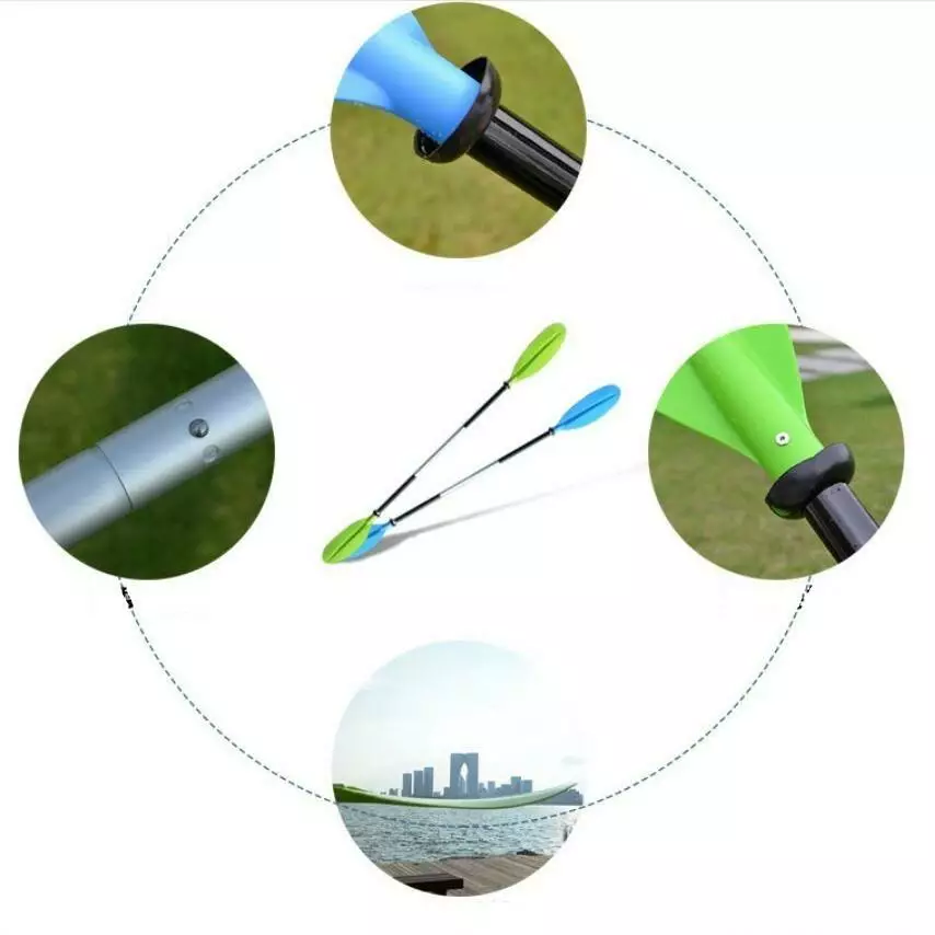 Двосекційне весло для байдарок та каяків вирізняється високою міцністю та зручністю в експлуатації. Його розбірна конструкція дозволяє легко транспортувати та зберігати спорядження. Штифт виготовлений з дюраль-алюмінію, що забезпечує міцність та легкість. Лопаті з пластику, посиленого карбоновим волокном, додатково підвищують стійкість весла. Ці весла зарекомендували себе як надійні та міцні, із високою стійкістю до корозії. Їхні параметри: загальна довжина - 230 см, вага - 1 кг, ширина лопаті - 17 см, висота лопаті - 40 см. Матеріали виготовлення: алюмінієвий сплав, поліпропілен та нейлон. Крім того, вони мають обтічний дизайн лез та алюмінієві трубки з герметичними заглушками, що робить їх водонепроникними. Ці весла - ідеальний вибір для тих, хто цінує легкість, міцність та зручність у веслуванні.