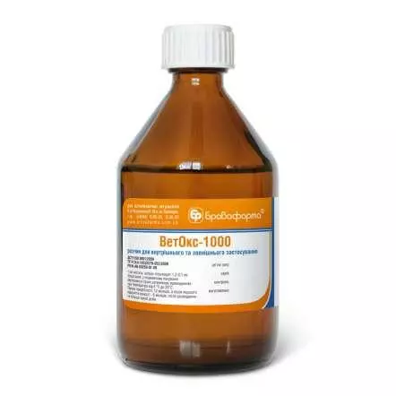 • Аплікації, зрошення великій рогатій худобі, коням, козам, вівцям, собакам, котам при абсцесах, флегмонах, постинъекционном флебіті, фурункульозі, дерматиті, інфекційно-алергічних ураженнях, роже, пульпіті, стоматиті: у співвідношенні 1:2 зі стерильною водою або фізіологічним розчином, щоденно, до повного одужання.