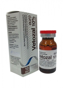 Опис Прозорий розчин рожевого кольору. Склад 100 мл препарату містять діючі речовини: бутафосфан - 10,0 г; ціанокобаламін - 0,005 г. Допоміжні речовини: до 100мл. Фармакологічні властивості ATCvet OA12C, інші мінеральні добавки(QA12CX91,бутафосфан). Ветозал 10% - препарат, що позитивно впливає не регенеративні та імунологічні процеси в організмі, стимулює та покращує обмінні процеси (білковий, жировий та вуглеводний обмін), сприяє підвищенню резистентності організму до впливу несприятливих чинників різної етіології, стимулює ріст та розвиток тварин. Препарат є малотоксичним, при застосуванні в рекомендованих дозах не виявляє місцево подразнюючої, ембріотоксичної, тератогенної та мутагенної дії, не кумулюється в організмі. Застосування Препарат застосовують всім видам тварин та птиці як тонізуючий, стимулюючий та загальнозміцнюючий засіб при: o акушерських патологіях (складні пологи, післяпологові ускладнення, парези, еклампсії, порушення статевого циклу); o порушеннях обміну речовин, що викликані нераціональною годівлею, недоїданням, астенічному синдромі тощо; o вторинних анеміях, анеміях при гельмінтозах; o як додатковий засіб при лікуванні дефіциту кальцію та магнію; o для підвищення м'язової активності, при значних навантаженнях, перенапруженнях та виснаженні у тварин; o для підвищення резистентності організму до дії різноманітних патогенів; o для стимулювання росту, розвитку та приросту живої ваги у молодих тварин; o як додатковий засіб при лікуванні захворювань, спричинених різними факторами (інфекційного та неінфекційного походження); Дозування Внутрішньовенно, внутршньом'язово, підшкірно або з питною водою (птиця) у таких дозах: коні і велика рогата худоба - 10-25 мл; лошата і телята - 5-12 мл; вівці та кози - 2,5-8 мл; ягнята - 1,5-2,5 мл; свині - 2,5-10 мл; поросята - 1-2,5мл; собаки - 0,5-5,0 мл; коти і хутрові звірі - 0,5-2,5 мл. За необхідності препарат вводять повторно через добу. Для птиці Катозал 10 % додається до питної води з розрахунку: кури та курчата - 1 - 1,5 мл на 1 л води; бройлери і кури-несучки - 2-3 мл на 1 л води. При хронічних захворюваннях тваринам вводять половину дози. За необхідності лікування повторюють через 5-14 діб. Протипоказання Немає. Застереження Немає. Форма випуску Препарат Ветозал 10% випускають у вигляді стерильного розчину у герметично закритих флаконах по 10 і 100мл. Зберігання У недоступних для дітей місцях, окремо від кормів та продуктів харчування при температурі від 5°С до 25 °С. Відкривати безпосередньо перед використанням. Термін придатності - 5 років з дати виготовлення, після відкриття флакону - 28 діб. Для застосування у ветеринарній медицині!