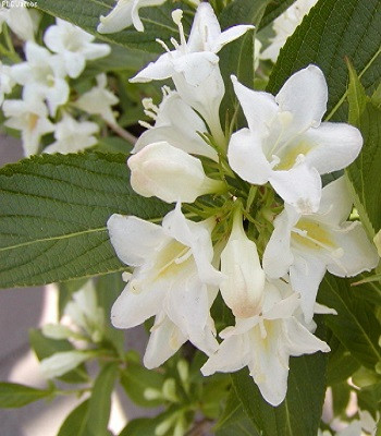 Сорту характерна витончена розкидиста крона і розкішне цвітіння. Особливістю сорту дзвонеподібні сніжно-білі квіти (3-4 см), зібрани у суцвіття по 3-4 шт. Листя велике, світло-зелене. Надає перевагу родючим грунтам, без застою води. Щорічний приріст 20-30 см. Відмінний як солітер в садах, парках, ефектний в якості живоплоту.