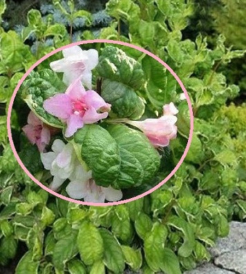 Вирізняється цікавою формою листя, яке утворюється через спосіб його зростання. Неординарне поморщене листя отримується внаслідок швидшого росту середини листка відносно країв і створює ефект 'роздутого пузиря' із кремовою облямівкою. Квіти дзвонеподібні, рожевого кольору. Віддає перевагу захищенним, звичайним, помірно вологим і добре дренованим грунтам. Чудовий в одиночній посадці або в контейнері - для невеликих садів та патіо, при висадці в групі -для формування низького живоплоту або зеленого бордюру.