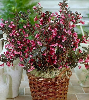 Повільноростучий сорт з густою, розлогою кулястою формою крони. Характерною особливістю є незвичайно привабливе коричнево-червоне забарвлення листя - при вирощуванні на сонці листя майже коричневі, надзвичайно декоративні. Під час цвітіння кущ густо вкритий багряними "дзвіночками". Квітне рясно і тривало на пагонах минулого року. Віддає перевагу вологим, багатим добре дренованим грунтам, від кислих до слабо лужних. Не виносить засоленість ґрунту. Ефектно виглядає в одиночних і групових посадках, бордюрах, контрастних колірних композиціях, підкреслюючи незвичайне забарвлення.