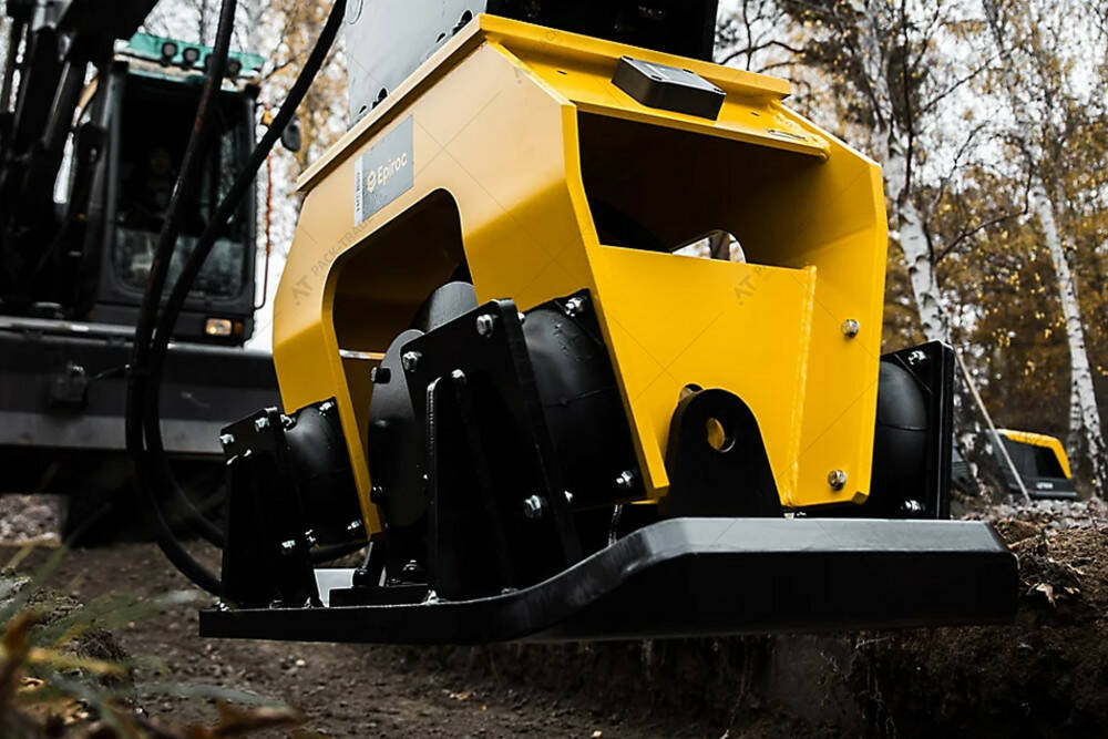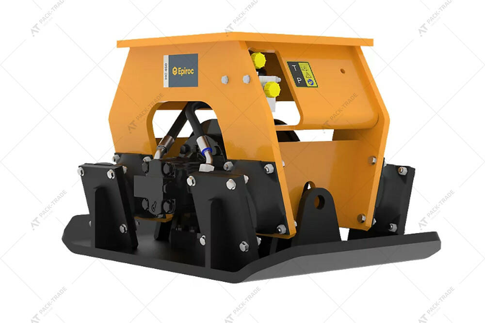 Віброплита Epiroc HC450 на екскаватор. Вага машини-носія — 4-9 т. Віброплити серії НС — це тихе, ефективне і просте в позиціонуванні обладнання, яким легко керувати. Гідравлічні віброплити призначені для ущільнення траншей і насипів, вирівнювання ґрунту, забивання паль, стовпів і елементів опалубки.