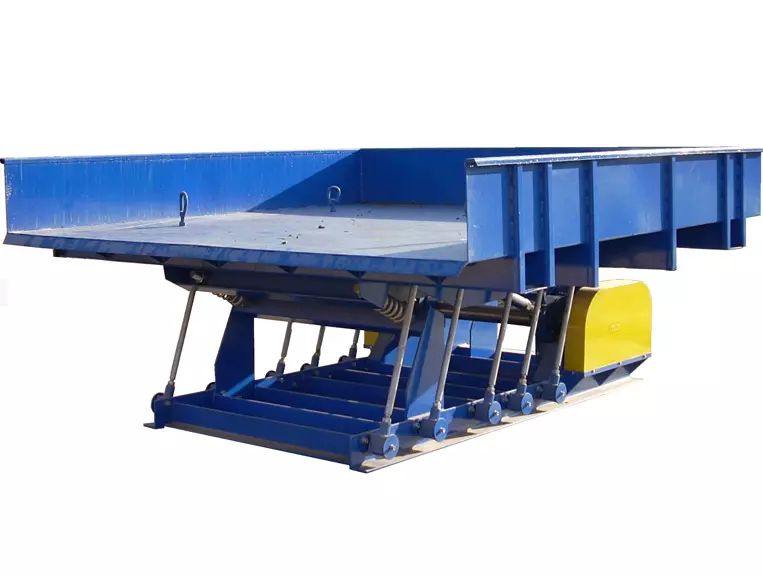 Вібростіл призначений для співпраці з вібраційними і стрічковими конвеєрами і використовується для зберігання великої кількості вхідного матеріалу, наприклад, завантаженого фронтальним навантажувачем або вилковим навантажувачем. Стіл складається з металевої коробки, поєднаної пружинними елементами з несучою рамою і приводом. Вібраційний стіл приводиться в дію електродвигуном, через позасередовищну систему, яка характеризується низьким енергоспоживанням, у зв'язку з резонансною системою роботи конвеєра. У залежності від місцевих умов, стіл встановлюється на фундамент на якому розміщується несуча рама. Матеріал з вібраційного столу за рахунок поштовхів рівномірно подається на вібраційний або стрічковий конвеєр. Синхронізація роботи вібростолу і стрічкового або вібраційного конвеєра дозволяє безперервну подачу сировини до дробарки. Ми пропонуємо завантажувальні вібростоли з розмірами 2x3 3x3 м, 4х3 м 5х3 м з двигунами потужністю від 5,5 кВт до 11 кВт.