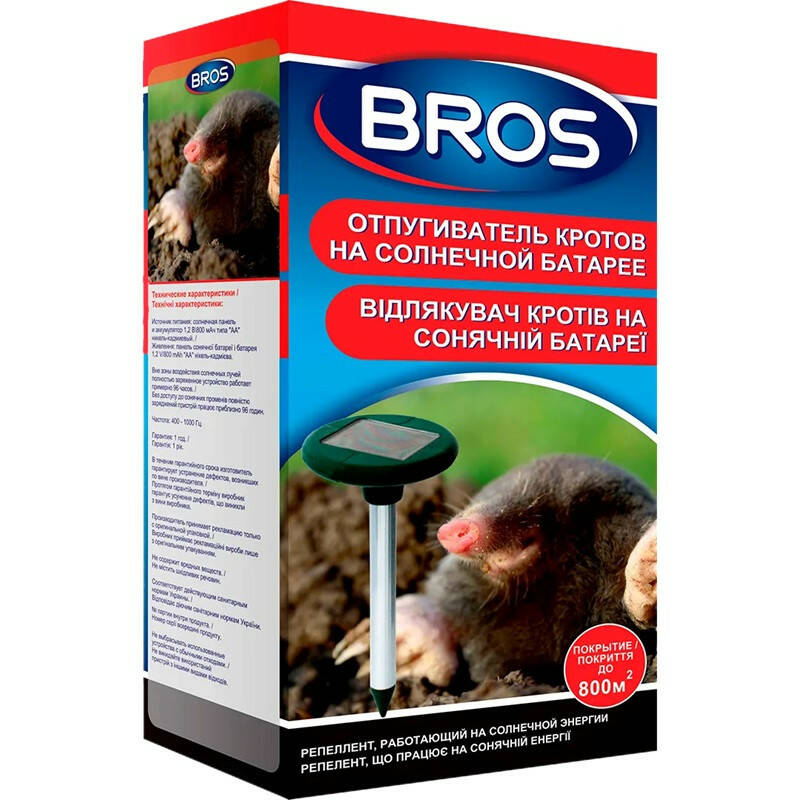 Відлякувач кротів на сонячній батареї Bros працює на основі ультразвукових хвиль, які непомітні для людини, але дуже неприємні для кротів, польових мишей та інших гризунів. Ці хвилі створюють несприятливі умови для їх проживання, змушуючи їх покинути вашу ділянку.