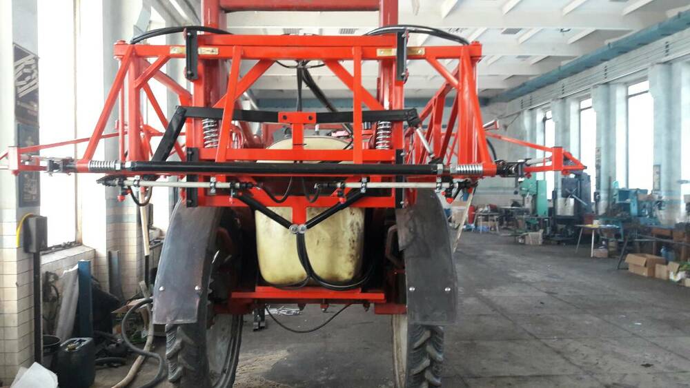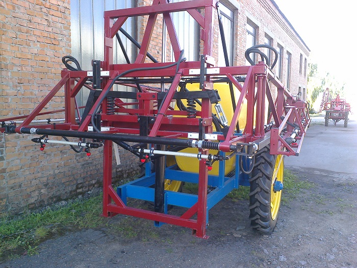 - штанга обприскувача повністю гідрофікована (паралелограмний механізм) з вертикальною рамкою, механізмом стабілізації, опорними кронштейнами. Висота підйому до 1,5 м, опускання до 0,5 м. Має ефективний механізм навіски, в якому коливання обприскувача у вертикальній площині переходять в коливання штанги в горизонтальній площині, завдяки чому забезпечується висока рівномірність обробки та висока надійність роботи штанги. Штанга об'ємної конструкції, підйом і опускання, складання і розкладання здійснюється за допомогою гідросистеми з кабіни трактора. Фіксація положення штанги в розкладеному стані здійснюється за допомогою гідрозамків. На штанзі в місцях можливого її стирання встановлені пластини із матеріалу, який має наднизький коефіцієнт тертя.