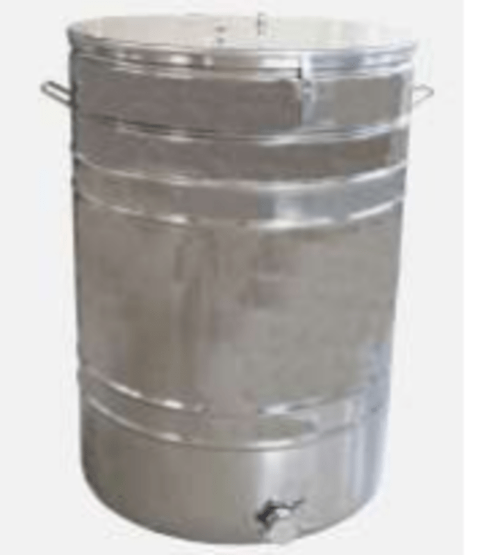 Відстійник нержавіючий для меду на 250 л призначений для очищення і зберігання свіжовикачаного меду. Після відкачування меду в ньому залишаються непотрібні частинки забрусу та інших продуктів бджільництва. Мед зливається у відстійник і зайві частки поступово піднімаються і збираються вгорі ємності. Мед зливається через кран, розташований внизу бака, тим самим запобігаючи потрапляння непотрібних залишків. Відстійник має зручні бічні ручки і кришку.
