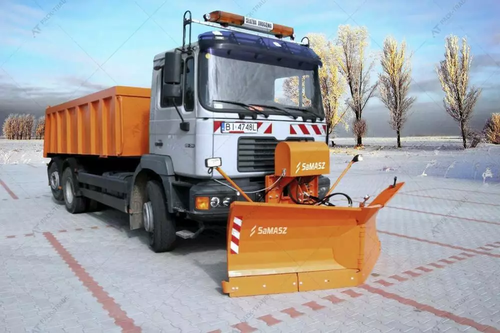 Відвал для снігу на трактор Samasz AlpS 331 Up H. Призначений для очищення снігу з доріг, парковань, парків та інших твердих та нетвердих поверхонь. Завдяки запатентованій системі адаптаційних рамок відвал може агрегатуватися майже з будь-яким транспортним засобом, а саме: з великою кількістю комунальних автомобілів типу MULTICAR, будівельними машинами, напр. Big Avant, Kramer, Weidemann, JCB, Manitou.