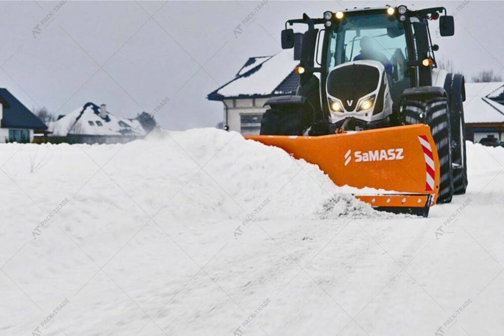 Відвал для снігу на трактор Samasz RAM 270 з гідравлічною системою зміни кута нахилу та допустимим навантаження спереду вагою до 6 тонн. Застосовується для очищення снігу з доріг, парковань та інших територій. Він може агрегуватися з комунальними тракторами, сільськогосподарськими тракторами з передньою навіскою II категорії або будь-яким іншим транспортним засобом завдяки запатентованій системі адаптаційних рамок SaMASZ.