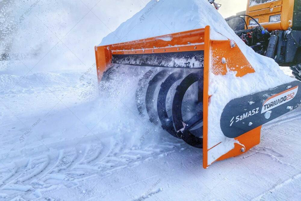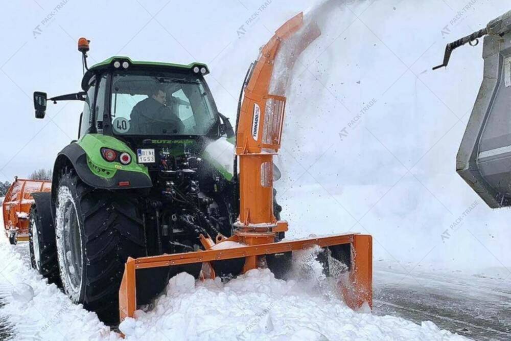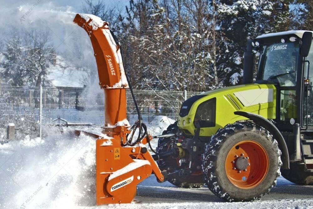 Відвал для снігу на трактор Samasz TORNADO 202 HYDRO з роторним механізмом призначений для ефективного очищення вулиць, великих площ та ділянок, на яких накопичилася велика кількість снігу. Він призначений для прибирання заметів висотою до 1 метра та може бути встановлений як спереду, так і ззаду трактора потужністю понад 90 к.с. Сніг прибирається та відкидається на відстань до 30 метрів, що дозволяє його легко завантажити на завантажувальну коробку автомобіля або причіп для подальшого перевезення.