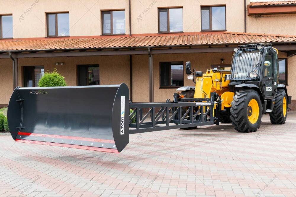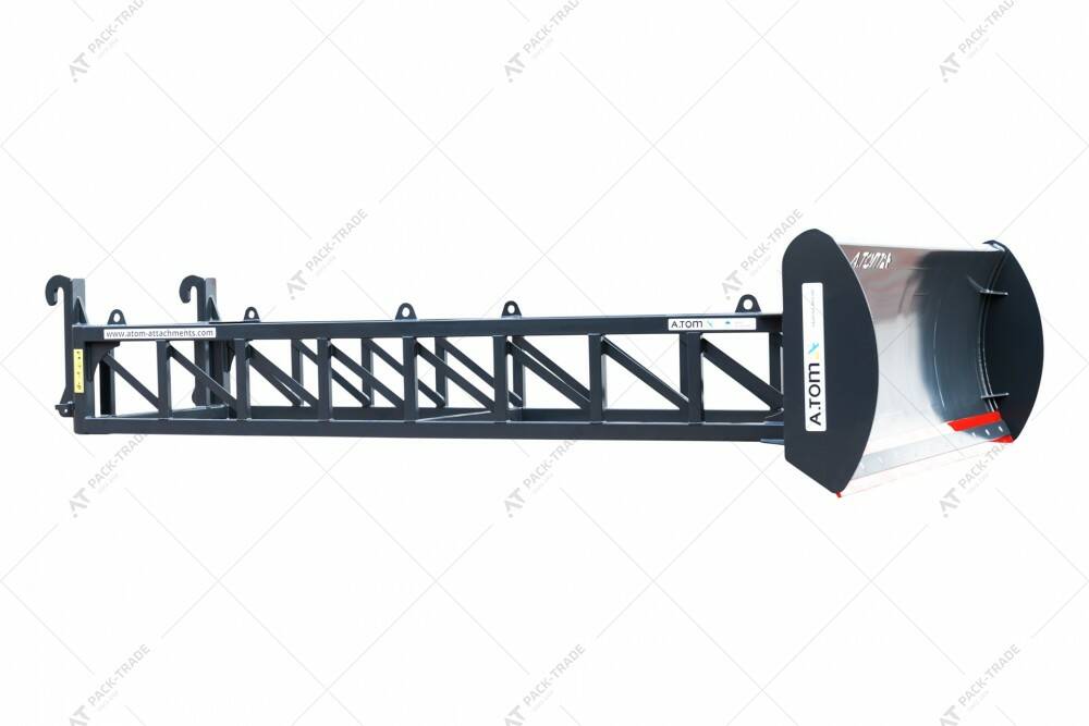 Відвал для зерна з подовжувачем 3 м - А.ТОМ 2500 — навісне обладнання, що агрегатується з навантажувачами та тракторами, призначене для переміщення та згрібання зерна, буртування кормів, силосу, снігу, піску та інших сипучих матеріалів. Оптимальна жорсткість та надійність досягається достатньою товщиною каркасу та особливостями конструкції. Подовжувач дозволяє значно збільшити виліт стріли навантажувача та переміщувати вантажі у приміщеннях максимально близько до стін, ущільнюючи їх, тим самим оптимізувати використання площ сховищ, пришвидшити їх прибирання та організувати їх раціональну експлуатацію.
