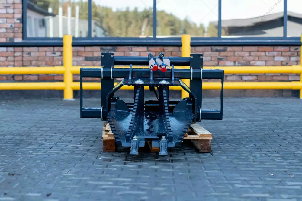 Гідравлічний викорчовувач A.TOM Plus для телескопічного навантажувача призначений для ефективного видалення пнів дерев, чагарників та інших рослинних залишків під час розчищення території перед проведенням будівельних або сільськогосподарських робіт. Конструкція обладнання відрізняється простотою та підвищеною міцністю, оскільки виготовлена зі сталі S355, що забезпечує високу стійкість до навантажень і зношування. Завдяки цьому викорчовувач дозволяє швидко та якісно очищати навіть сильно зарослі або давно необроблювані ділянки. Обладнання використовується у комунальному господарстві, лісовій галузі та сільському господарстві.