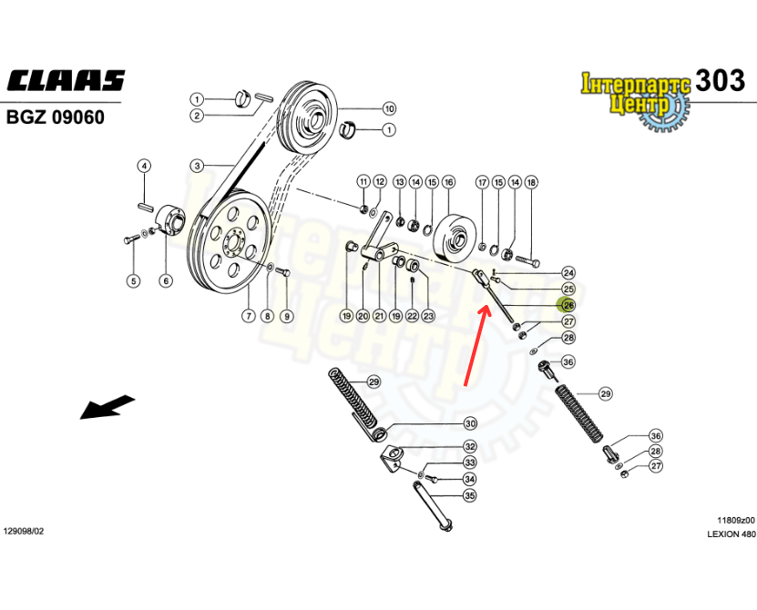 Вилка натяжного пристрою приводу Claas 644332, 000644332, 644332.0, 6443320, 0006443320