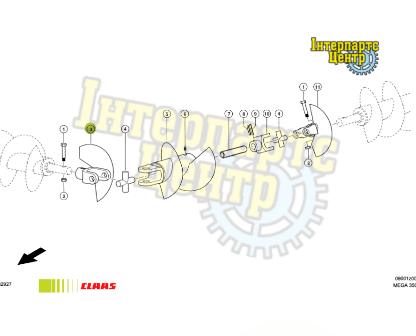 Вилка шнека вивантажувального комбайна Claas Medion, Mega, Tucano. Забезпечує вивантаження зерна з бункера до кузова транспортного засобу.