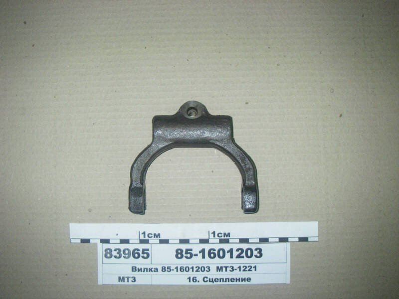 Вилка выключения сцепления устанавливается на тракторах МТЗ-1025, 1221, 1523, 2022, оригинальная, производства ОАО 'Минский тракторный завод', ОАО 'МТЗ', г. Минск, Республика Беларусь Сцепление -механизм, работа которого основана на действии силы трения скольжения (фрикционная муфта), предназначен для передачи крутящего момента, плавного переключения передач, гашения крутильных колебаний, кратковременного отсоединения трансмиссии от маховика двигателя. Обычно термин «сцепление» относится к компоненту трансмиссии транспортного средства, предназначенному для подключения или отключения соединения двигателя внутреннего сгорания с коробкой передач. Изобретение сцепления приписывают Карлу Бенцу. Сцепление служит для временного разобщения коленчатого вала двигателя с силовой передачей автомобиля, что необходимо при переключении шестерён в коробке передач и при торможении автомобиля вплоть до полной его остановки. Кроме того, сцепление даёт возможность плавно (без рывков) трогаться с места.