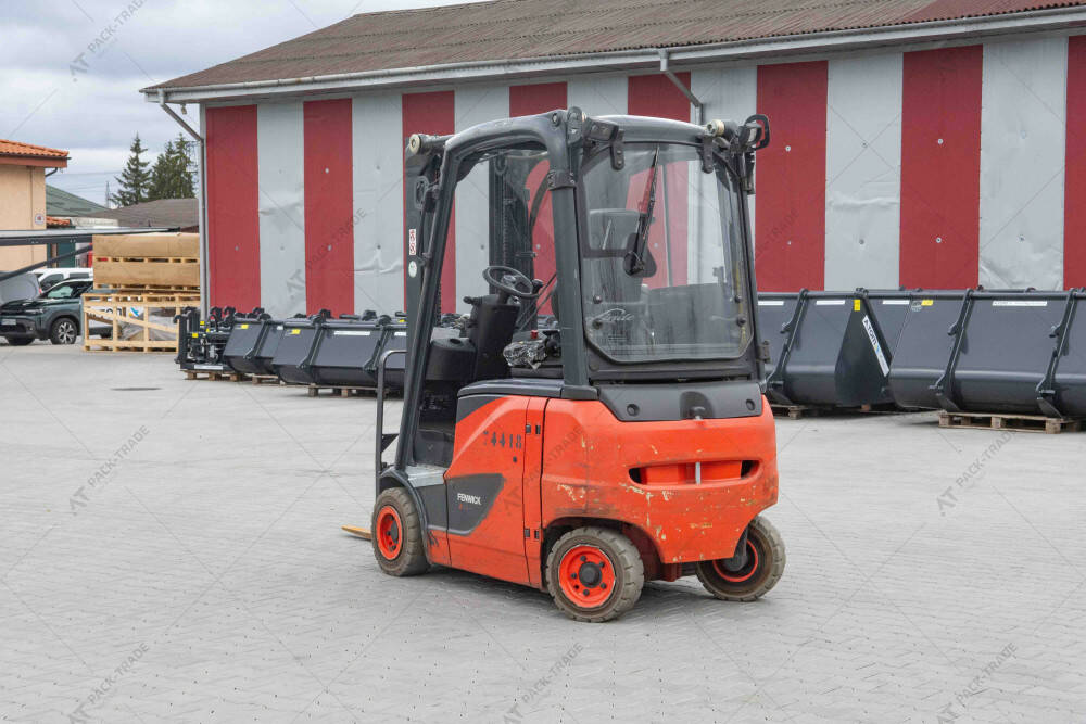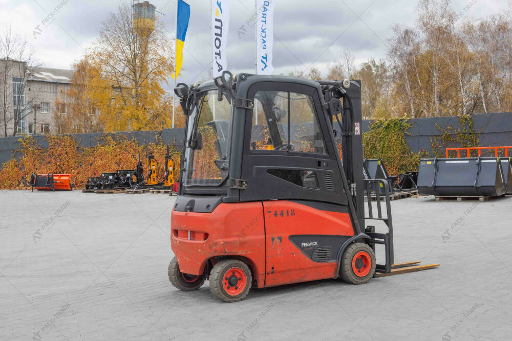 Електричний навантажувач б/в Linde E16PH-02, 2020 р/в, з напрацюванням 6616 м/год. Тип щогли Triplex. Вантажопідйомність 1600 кг. Висота підйому 4,6 м. Загальна висота навантажувача 2,15 м. Шини пер.18х7-8, зад.16х6-8. Вила — 100 см. Напівкабіна, робоче освітлення.
