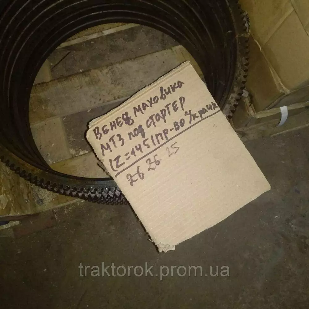 Вінець маховика 50-1005121 під стартер із зубцями Z=145 - призначений для встановлення на 4-х і 6-ти циліндрові двигуни тракторів МТЗ, обладнаних стартером. Забезпечує надійне зачеплення зі стартером, стабільне обертання маховика та довговічну роботу двигуна. Виробництво — Україна.